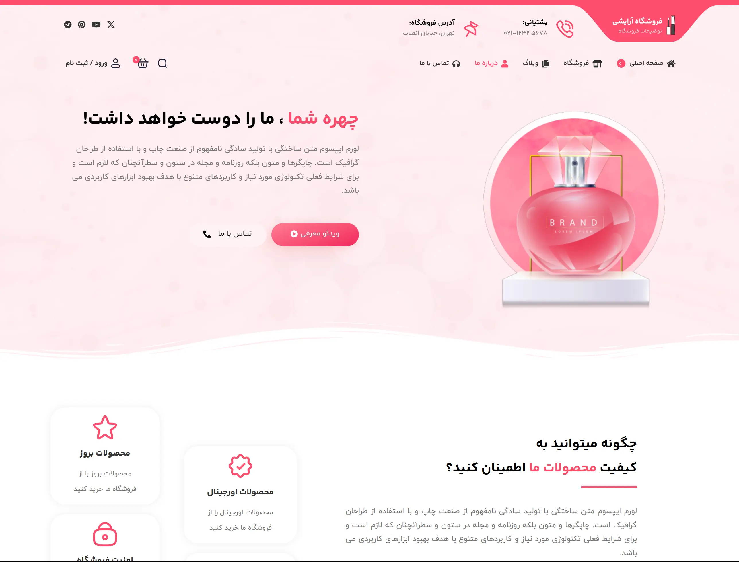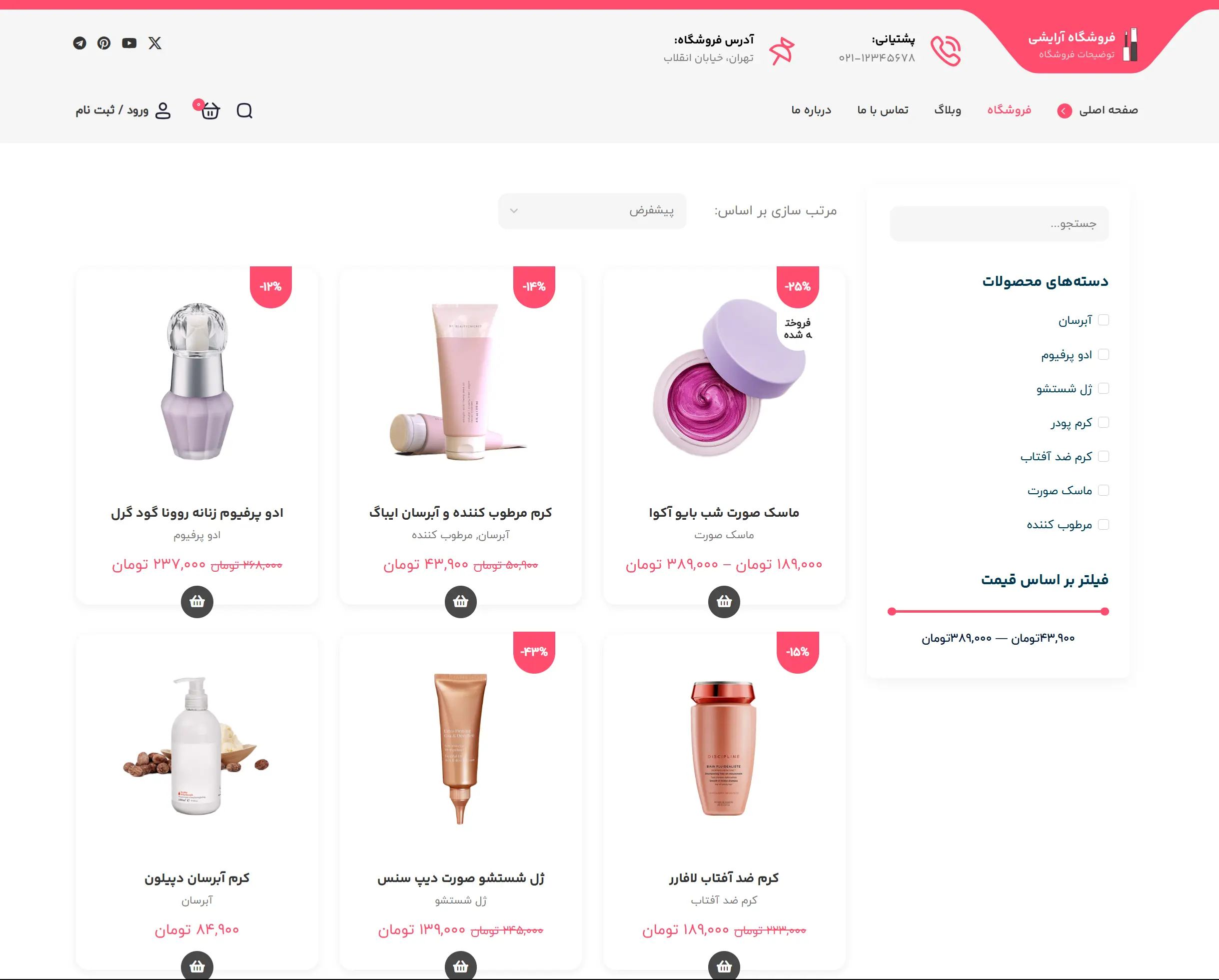 در این فروشگاه اینترنتی لوازم آرایشی، صفحات کاربردی و کاملی طراحی شده است که نیازهای کاربران و مدیران سایت را به خوبی برآورده میکند: